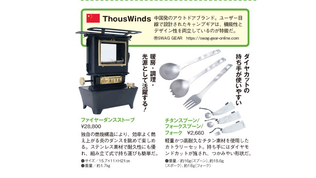 弊社が日本総代理店を務めておりますブランドThouswinds製品が、『BE PAL』6月号の特集「中・韓・台ブランド最前線」にて掲載されました。